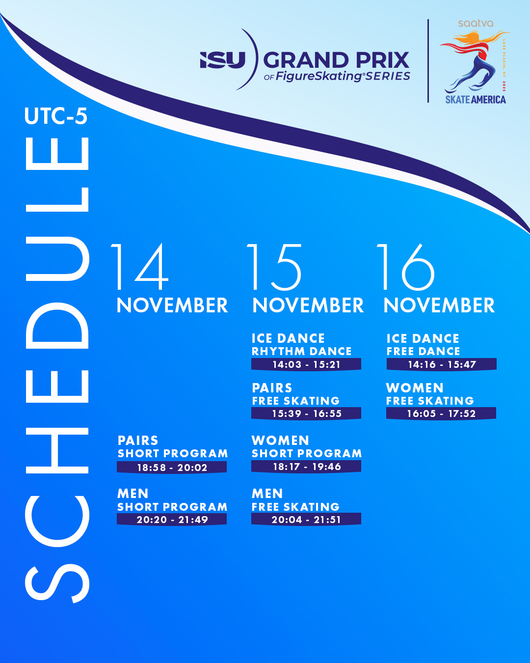 Find event information, schedule for Men, Women, Pair Skating and Ice Dance Figure Skating competition as part of the ISU Grand Prix.